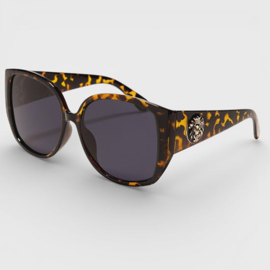 The bold large silhouette pairs beautifully with any wardrobe, while the gleaming Kleo Lion insignia on the arms whispers luxury shades.